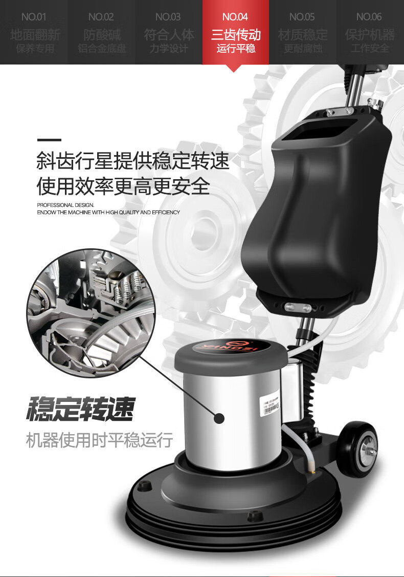 選擇揚子YZ-J1晶麵處理加重機的6大理由:專(zhuan) 業(ye) 性、鋁合金底盤、可調節手柄、行星齒輪箱、聚乙烯水箱、防撞膠圈,多種路麵適用。
